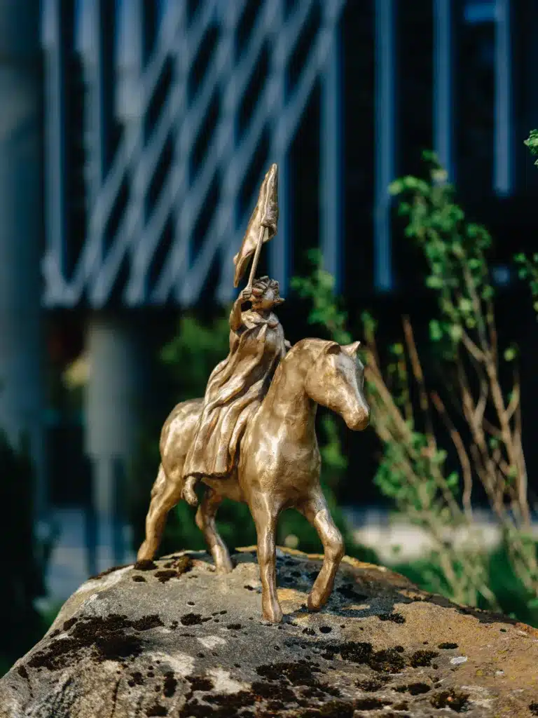 Ja esimene ratsamonument ei jäänud viimaseks – kus on, sinna tuleb juurde! Arteri ees maakivide otsast Liivalaia tänaval leiab suisa õige mitu ratsamonumenti või koguni ratsaväeüksuse. Kunstnik Flo Kasearu hobused ja ratsanikud on teostatud vastupidi traditsioonilistele ratsamonumentidele väikse vimkaga ehk on üsna miniatuursed. Taas mõttekoht, kuid leidub ka suur Flo Kasearu ratsamonument. Võiks mõelda, et selline kuluks ära Revali linnaarenduse käimatõmbajale, vägevale Taani kuningale Valdemar II Võitjale? Kuid ei, päris põnevalt istub ratsahobuse seljas hoopis iseseisvunud noore Eesti ühiskonnaelu vägevaid naistegijaid – Alma Ostra-Oinas, kes tegelikult oli veel lühikest aega ka bolševik Jaan Anvelti abikaasa. Provokatiivne, vahest, aga väga aja vaimuga!